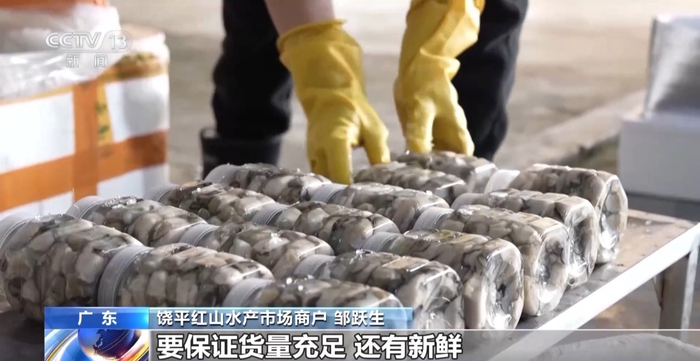饶平红山水产市场商户 邹跃生:最近生蚝大量上市,来买的人很多。每天我们凌晨就开始准备,要保证货量充足、新鲜。
