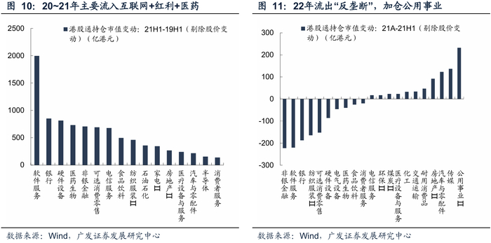 2021年下半年,受国内反垄断、行业监管政策(教培行业整治)以及美联储货币政策转向影响,港股新经济板块深度调整,南向资金在7-8月出现大规模净流出。互联网、金融等行业因监管政策变化遭遇资金减持,而公用事业(发电、燃气)、传媒、汽车及地产等行业则获得资金流入。