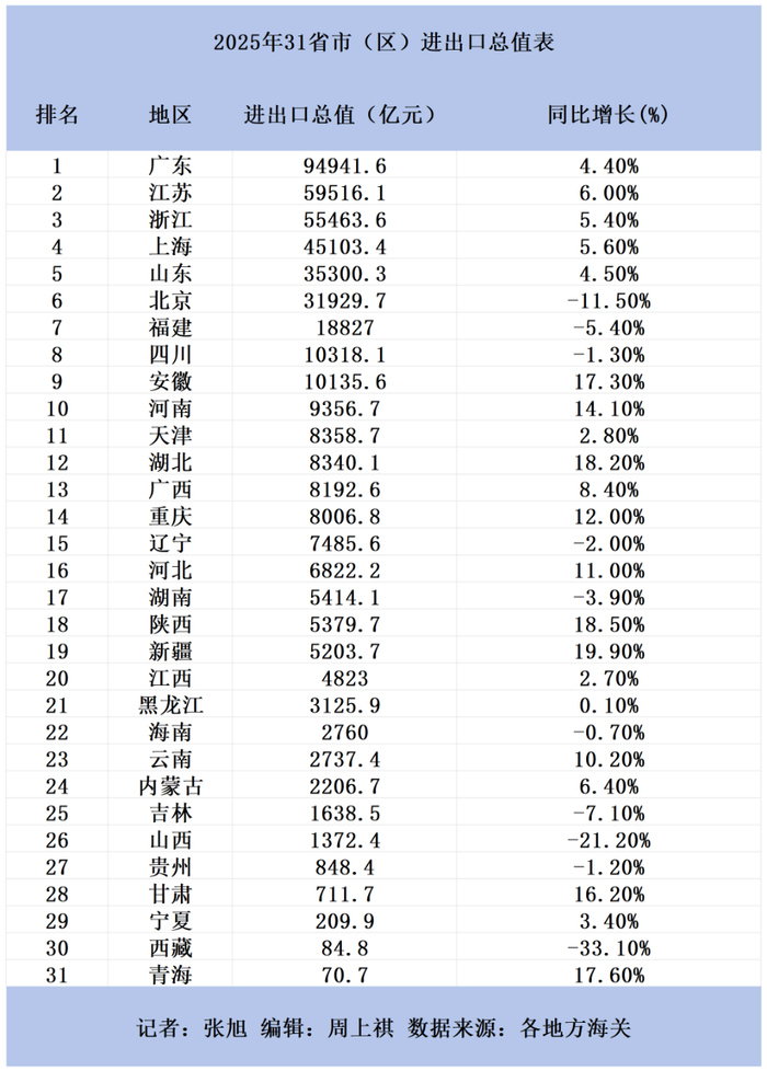 31省份外贸成绩单公布:广东9万亿登顶,安徽逆袭河南