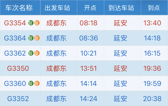 成都东→延安