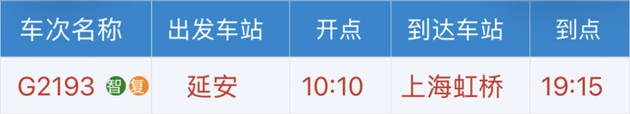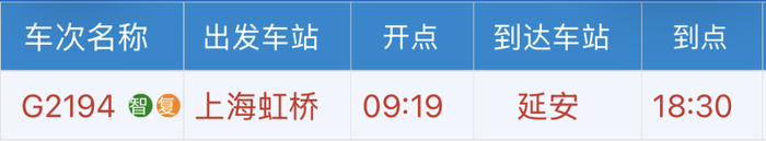 延安→上海虹桥