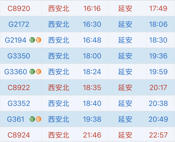 延安→西安北