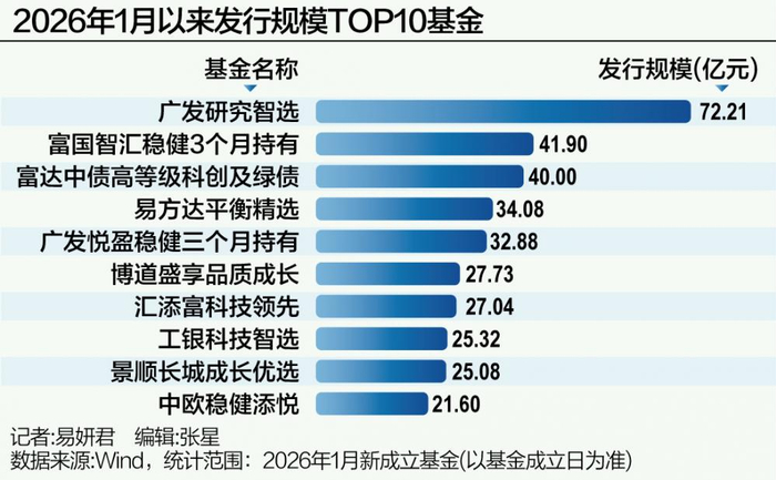 据Wind统计,截至2026年1月25日,本月内新成立了76只基金,合计发行规模达到719.39亿元,单只产品平均发行规模约为9.47亿元。而上一次月度新成立基金的平均发行规模超过9亿元,要追溯到2025年2月。