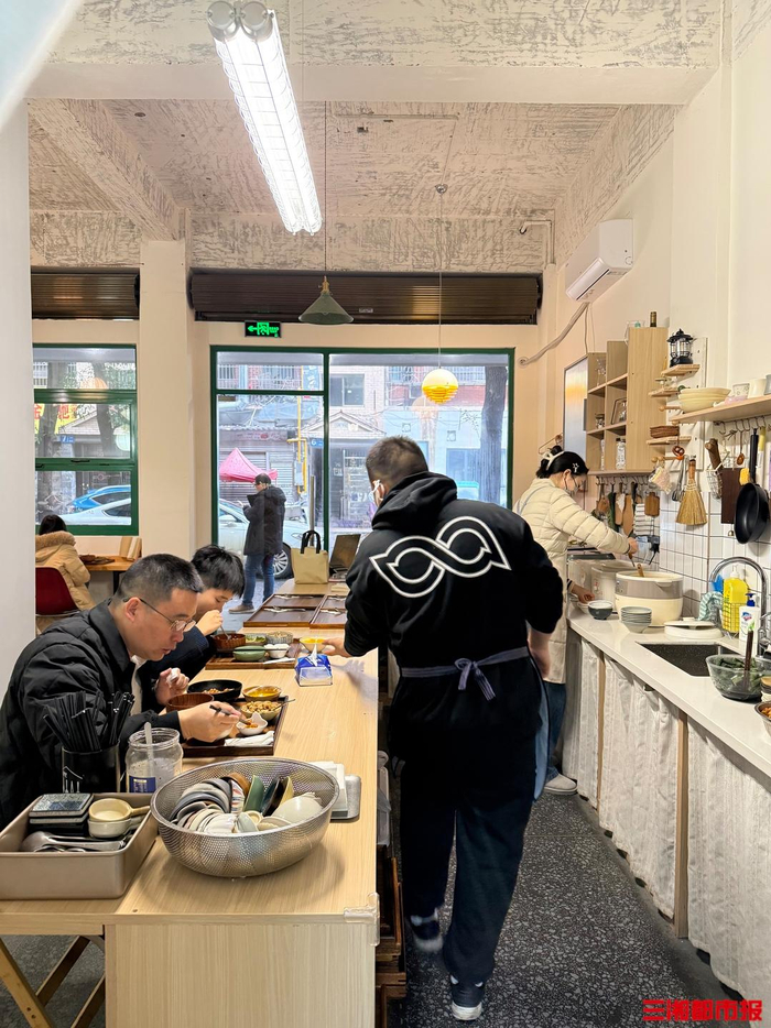 中午12时,小馆里早已飘出诱人的饭菜香。开放式吧台后,父亲的颠勺声此起彼伏;吧台前,独自就餐的年轻食客们或低头细品,或与主厨轻松闲聊,配菜碟空了还能随时续加——这家拒绝外卖、不做商业引流的小馆,仅凭一口家常味,就让年轻人甘愿驱车十公里,只为赴一场“一人食的惬意之约”。