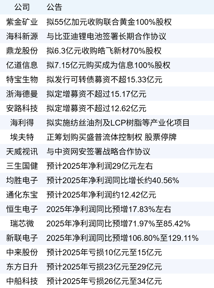 •紫金矿业公告,公司控股的紫金黄金国际拟以44加元/股的现金价格,收购联合黄金全部已发行的普通股,收购对价共计约55亿加元(约合人民币280亿元)。联合黄金核心资产包括在产的马里Sadiola金矿、科特迪瓦金矿综合体(含 Bonikro和Agbaou金矿),及将于2026年下半年建成投产的埃塞俄比亚Kurmuk金矿。(新华财经)