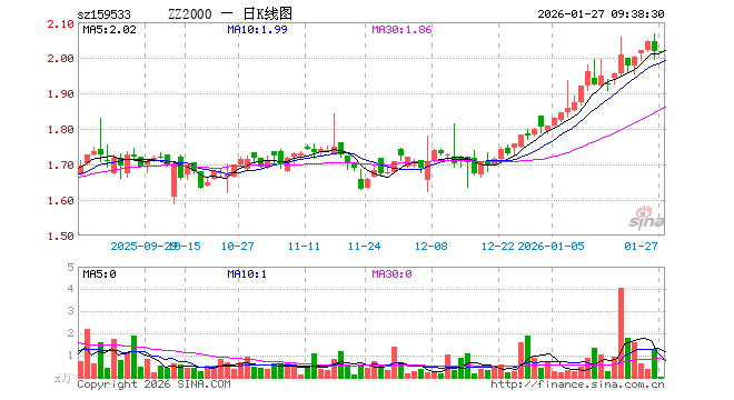 1月27日,中证2000ETF基金(159533)开盘涨0.00%,报2.018元。中证2000ETF基金(159533)重仓股方面,鸿富瀚开盘跌0.36%,亚太股份跌0.47%,新黄浦跌0.14%,中原内配涨0.07%,海伦哲涨0.75%,龙磁科技跌0.10%,慧智微跌0.41%,华源控股跌0.08%,丽尚国潮跌0.73%,永创智能跌0.06%。