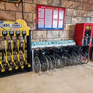 记者体验某险企最新开发的旅居康养项目,景区摆放轮椅供老年人使用(记者曹媛/摄)