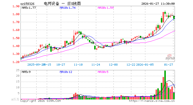 电网设备ETF(159326)跌2.25%,半日成交额10.33亿元