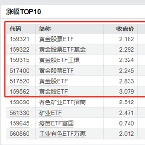此外,其他上榜的4只基金,包括工银瑞信基金管理的黄金股ETF工银(159315)、国泰基金管理的黄金股票ETF(517400)、永赢基金管理的黄金股ETF(517520)、华夏基金管理的黄金股ETF(159562)年初至今的涨幅也都超38%,在金价上行周期中,展现出惊人的收益能力,远超同期多数主流资产类别。
