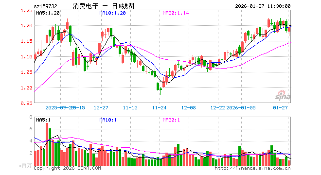 消费电子ETF(159732)涨1.19%,半日成交额9486.34万元