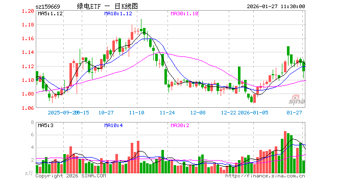 绿电ETF(159669)跌1.07%,半日成交额210.48万元
