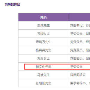 目前光大银行高管层形成行长郝成经营掌舵,以及副行长齐晔、杨兵兵、刘彦(兼首席财务官)分管局面。杨文化如今不仅披露为行领导,且在高管中位列首席风险官马波和董事会秘书张旭阳(兼联席公司秘书、首席业务总监)之前。在党内职务先行操作下,后续其行内职位静待官方揭晓。