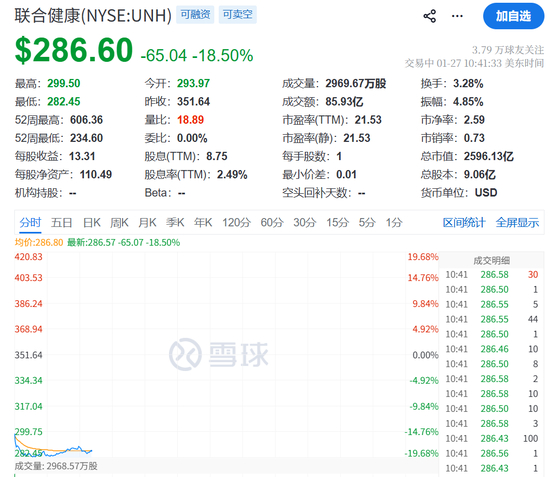 道琼斯指数的下跌,主要受到了联合健康暴跌近20%的影响。消息面上,联合健康集团预计其2026年营收将下降,这将是该公司三十多年来首次出现年度营收收缩。在去年股价遭遇重挫后,这家保险巨头试图重建投资者信心,但进展不顺。