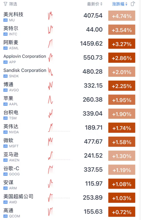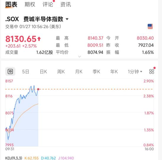 费城半导体指数大涨超过2%。