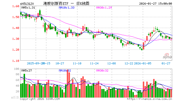 1月27日港股创新药ETF(513120)份额增加1.30亿份,最新份额194.73亿份,最新规模254.18亿元