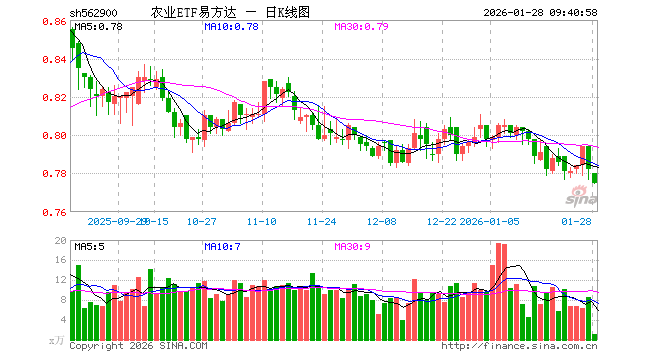 农业ETF易方达(562900)开盘跌0.26%,重仓股牧原股份跌0.33%,温氏股份跌0.20%