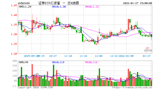 1月27日证券ETF汇添富(560090)份额减少150.00万份,最新份额28.37亿份,最新规模36.39亿元