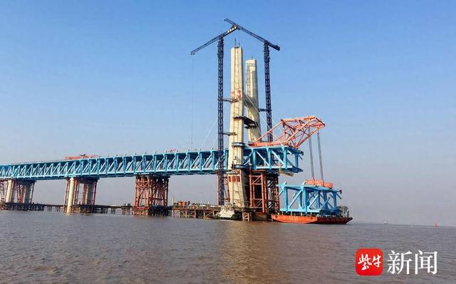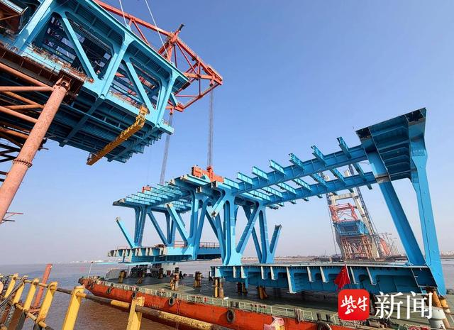 崇启公铁长江大桥主跨首个钢节段梁吊装完成