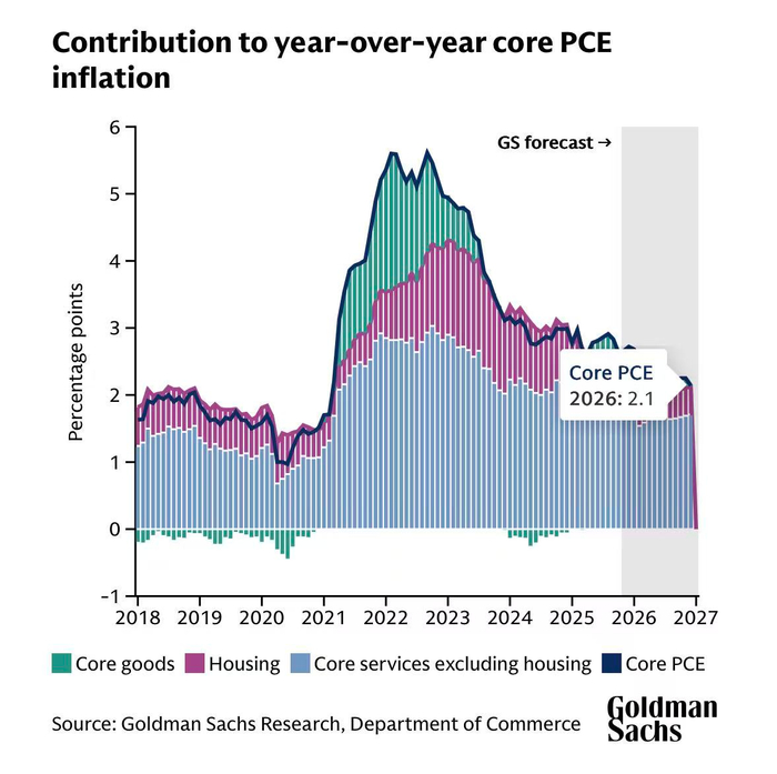 高盛首席经济学家表示,“我们之所以有信心,部分原因是我们认为2025年通胀下降方面实际上取得了实质性进展,只不过这一进展被关税的一次性影响所掩盖,而关税影响应该会在今年消退”。