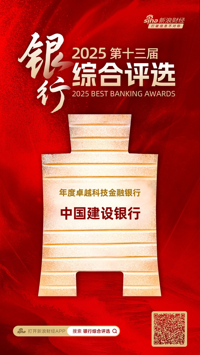 1月28日金融一线消息,由新浪财经主办的“2025(第十三届)银行综合评选”活动获奖名单今日正式揭晓!中国建设银行获评“年度卓越科技金融银行”。