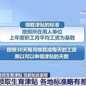 昆明市为产假(98天)+生育假(60天)+难产(含剖宫产)15天+多胎15天,即申领津贴天数为最短158天,最长188天。以工资1.8万元和5~6个月的时长计算,孕妇可以申领到10万元左右的津贴。