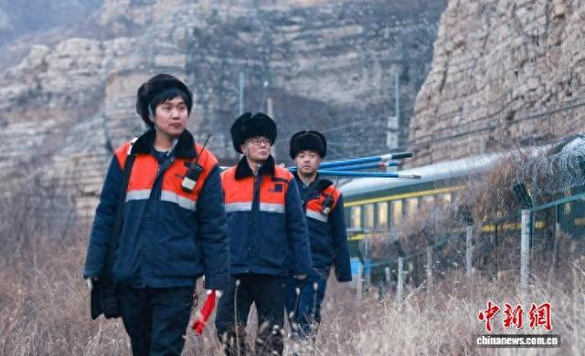 1月28日,中国铁路北京局集团有限公司北京供电段的巡检人员在北京市门头沟区对丰沙铁路供电系统和设备开展巡检,排查隐患。随着春运临近,铁路后勤维保部门加强巡检,确保行车安全。中新社记者 贾天勇 摄