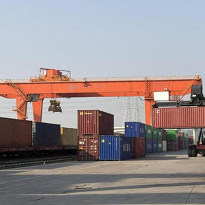 图为浙江义乌西铁路货场内,正面起重机在搬运码放集装箱。新华社记者魏一骏 摄