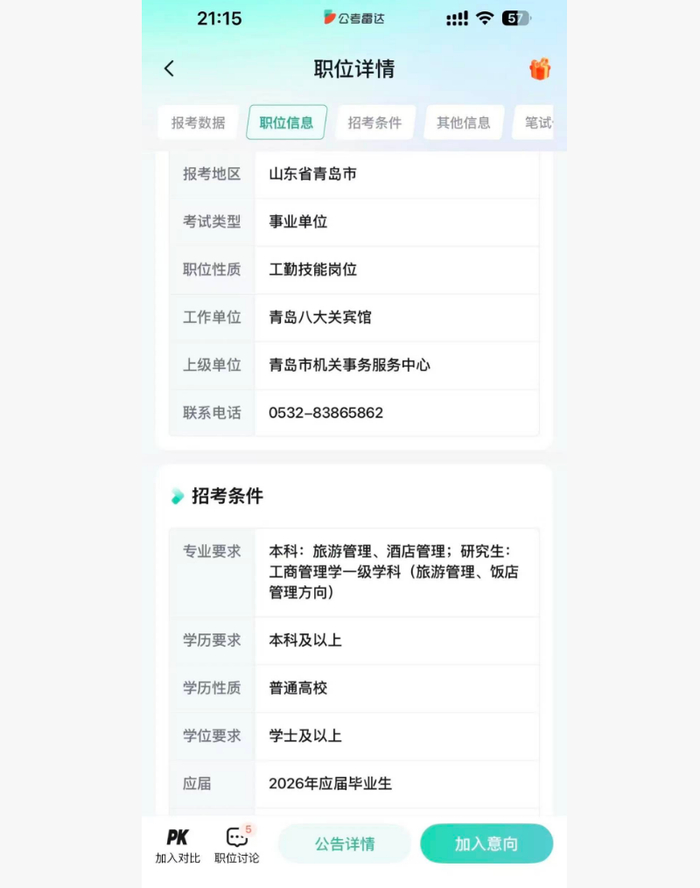 目前,青岛市2026年度市属事业单位招聘仍在报名阶段,关于“酒店服务岗位”的具体工作内容,不少考生仍在等待更详细的说明。有报考意向的人员可通过青岛市人社局官方渠道查询公告细节,或直接咨询招聘单位。