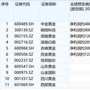 多家贵金属概念上市公司2025年业绩预喜。