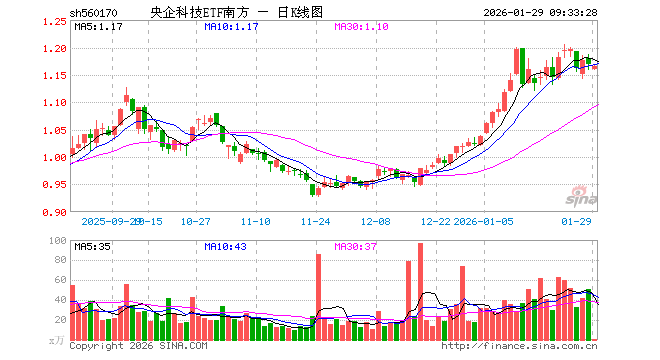 央企科技ETF南方(560170)开盘跌0.86%,重仓股海康威视涨0.00%,深南电路涨0.81%