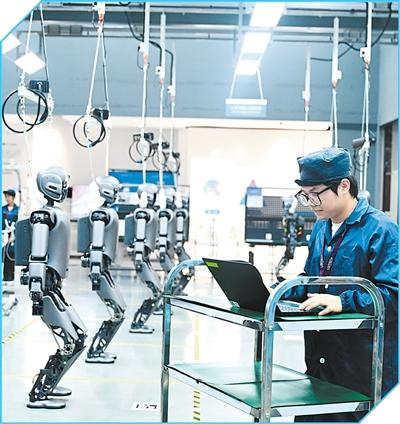 广西柳州,北部生态新区机器人产业园,工人在检查人形机器人产品。