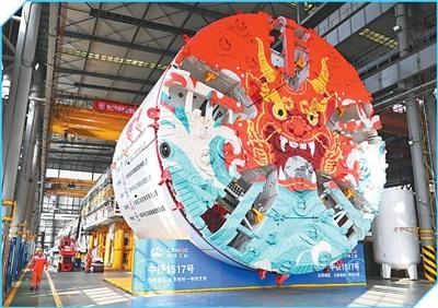 河南郑州,中铁装备集团车间,工人在进行盾构机下线验收工作。