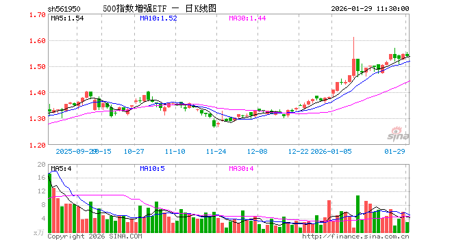 500指数增强ETF(561950)跌0.45%,半日成交额453.37万元