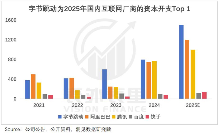 当然,快手不跟字节正面硬刚,或许并非“不想”,而是“不能”——2025年,字节在算力、芯片等方面的资本投入达1500亿元,断层领先第二名阿里50%,比快手足足“多了一个0”。