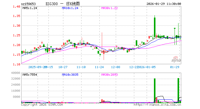 ESG300ETF(159653)跌0.24%,半日成交额38.86万元