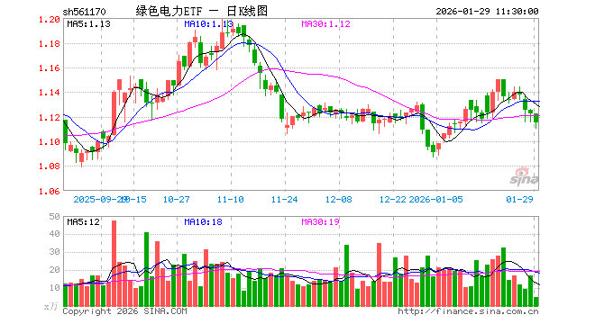 绿色电力ETF(561170)跌0.62%,半日成交额510.95万元