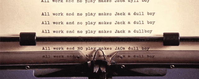 打字机上反复出现的话,成了现代人被工作压垮导致精神崩溃的经典表达。