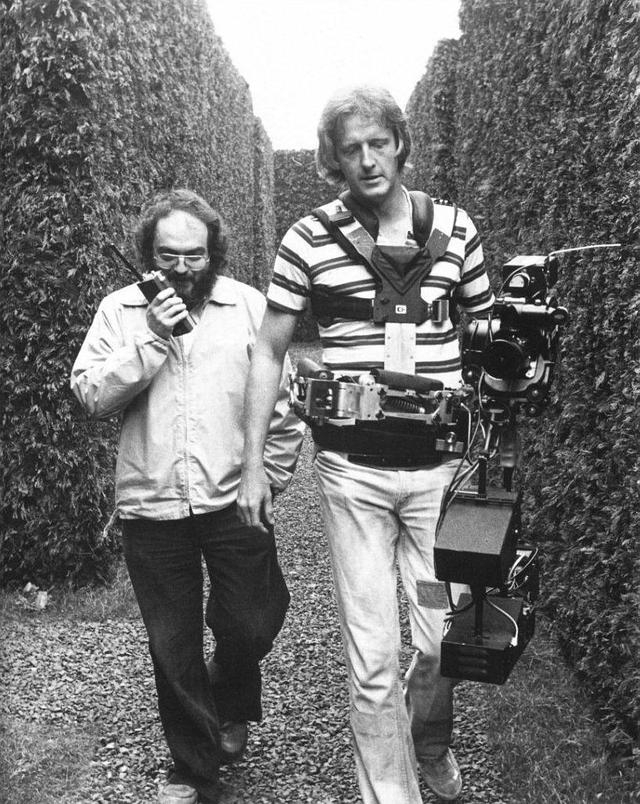 库布里克(左)与斯坦尼康的发明人Garrett Brown在拍摄现场。