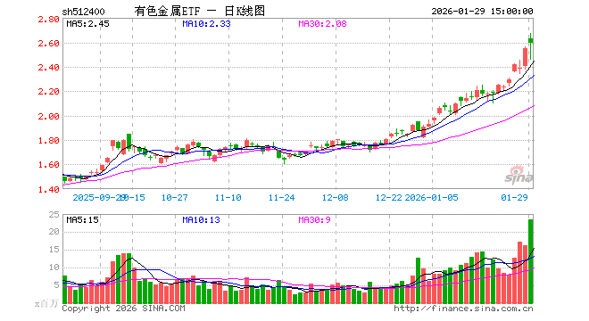 1月29日有色金属ETF(512400)份额增加6.67亿份,最新份额184.61亿份,最新规模477.57亿元