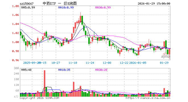 1月29日中药ETF(159647)份额增加900.00万份,最新份额15.27亿份,最新规模15.01亿元