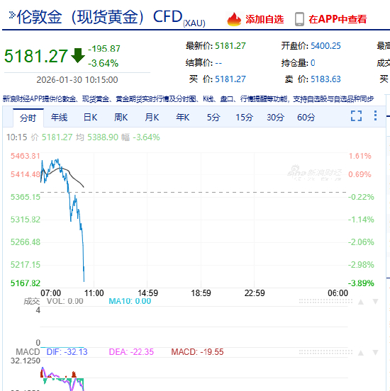 快讯:现货黄金短线跳水失守5200美元/盎司,日内跌超3%