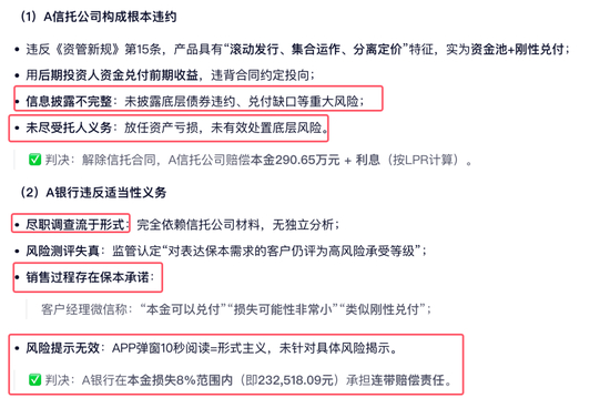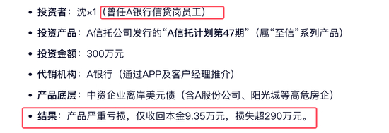 2 、在北京市东城区人民法院(2024)京0101民初18627号民事判决书中,根据一审判决查明的事实,A银行作为专业金融机构,对代销产品的相关风险评估和管理不够审慎,对涉及代销产品发行主体的负面消息未及时采取应对措施,在代销产品底层已经出现违约事件后仅援引A信托公司给予的信息,未经自主分析;未及时采取应对措施而仍向金融消费者进行销售,其行为也构成对适当义务的违反。沈×1举证的监管回复意见中还认定了A银行对投资者风险承受能力评估存在缺陷,该缺陷亦是A银行承担适当性义务的重要内容。