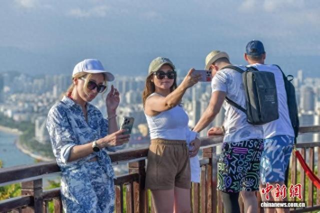 2025年6月7日,海南省三亚市鹿回头风景区的城市景观与山海风光相映成趣,吸引众多中外游客前来,饱览海天一色美景。 中新网记者 骆云飞 摄