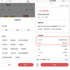 事实上,只有部分银行会在其贵金属产品的介绍中明示供应商。如招商银行,其招行金产品包括自营和代销两类,代销产品的供应商包括百泰公司、陕西黄金、山东黄金、山东招金、中国黄金等十余家。以“招行金马贺岁金条”产品为例,招行在手机银行页面中明确写明此产品非招商银行自营,供应商为百泰公司。