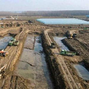 山东省聊城市位山灌区西沉沙池6号池清淤工程施工现场。山东省水利厅供图