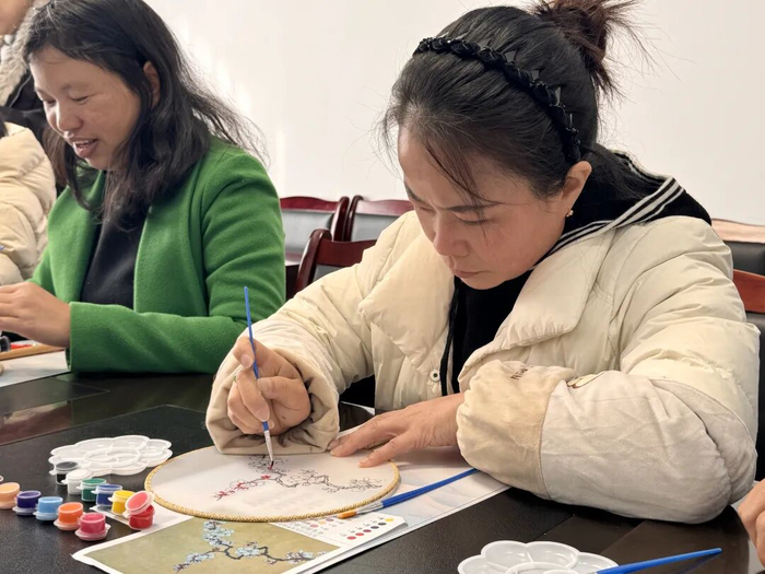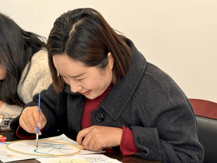 活动现场,素雅的团扇、缤纷的颜料与笔墨整齐摆放,营造出浓厚的艺术创作氛围。文明实践者首先讲解团扇所承载的“团圆友善、吉祥如意”传统文化内涵,并示范将“廉”之意象融入绘画的技巧。随后,纪检监察干部们纷纷执笔,以扇为纸,以心为笔,潜心创作。