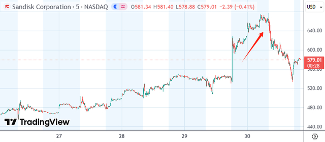 存储股涨跌不一,闪迪收涨6.85%,盘中一度涨超25%,公司季度营收和每股收益均远超预期。西部数据跌10.12%,希捷科技跌8.71%,美光科技跌4.8%。