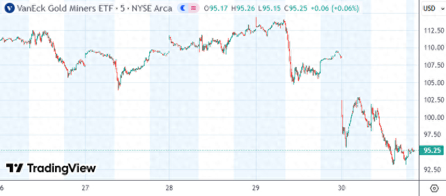 受金银暴跌影响,美股金矿板块“血流成河”,纽曼矿业跌11.49%,伊格尔矿业跌11.61%,巴里克黄金跌12.03%,VanEck黄金矿业ETF(GDX)跌12.76%。