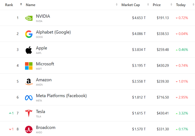 大型科技股多数走低,(按市值排列)英伟达跌0.72%,谷歌C跌0.04%,微软跌0.74%,亚马逊跌1.01%,Meta Platforms跌2.95%。
