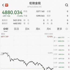 Wind数据显示,截至收盘,现货黄金报4880.034美元/盎司,下跌9.25%,创1980年4月1日以来最大单日跌幅,回吐本周所有涨幅,1月份现货黄金价格累涨13.01%,1月29日亚太午盘曾涨至5598.75美元/盎司。COMEX黄金期货周五下跌8.88%,报4846.20美元/盎司,1月份累涨13.38%,1月29日也曾达到5586.29美元/盎司。